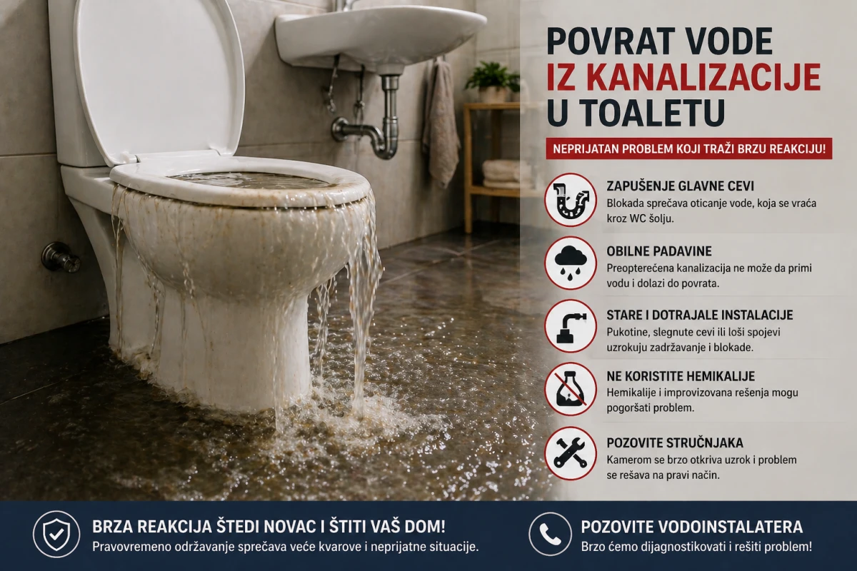 Povrat vode iz kanalizacije u toaletu je jedan od najneprijatnijih problema koji može zadesiti domaćinstvo. Osim što izaziva paniku i nelagodu, ovaj kvar može dovesti i do ozbiljnih higijenskih i materijalnih posledica ako se ne reaguje na vreme. Kada se prljava voda vrati kroz WC šolju, jasno je da nešto u sistemu ne funkcioniše kako treba.